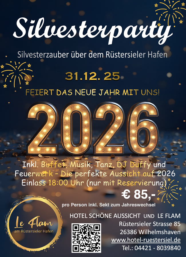 Erleben Sie einen unvergesslichen Jahreswechsel mit bester Stimmung, kulinarischen Highlights und einem atemberaubenden Blick über den Rüstersieler Hafen!